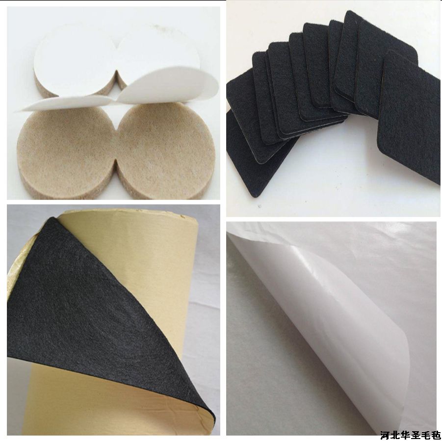 1. 膠粘毛氈是根據(jù)客戶需求選用不同等級的毛氈或纖維氈同高粘度環(huán)保膠覆合而成,使其具有牢固的自粘性,可以經(jīng)過磨具沖切制成各種形狀的膠粘毛氈件。